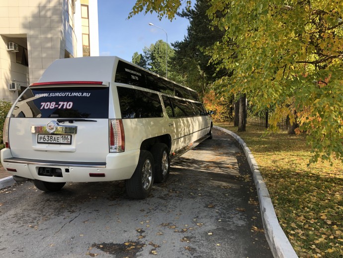 Заказать лимузин до 24 персон Кадиллак Эскалейд с приподнятым потолком, будет превосходным поводом полюбоваться шикарными видами города, при этом не прерывая зажигательный вечеринку.